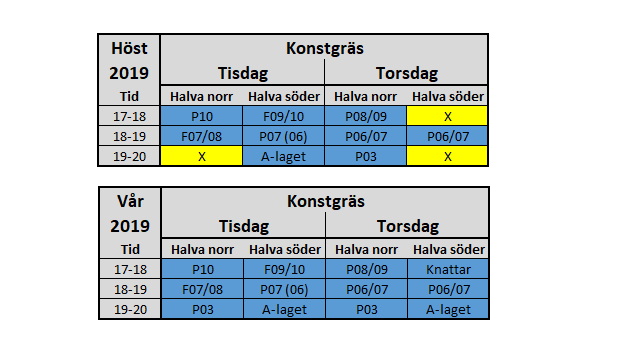 • Träningstider inomhus och konstgräs 2019-2020